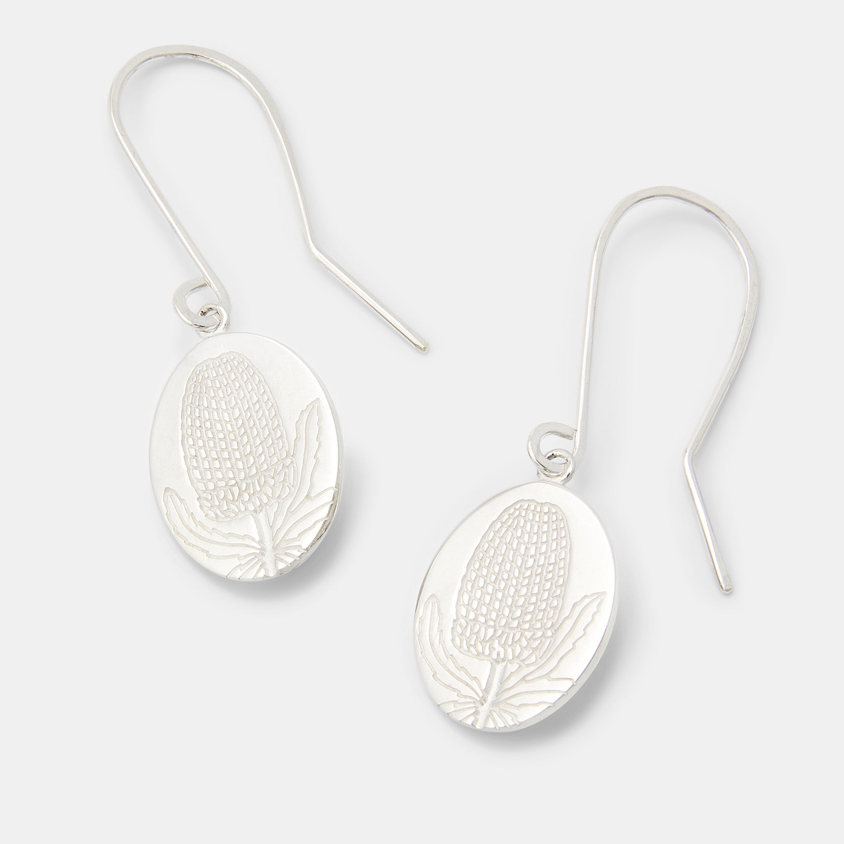 Banksia Oval Sterling Silver Drop Earrings