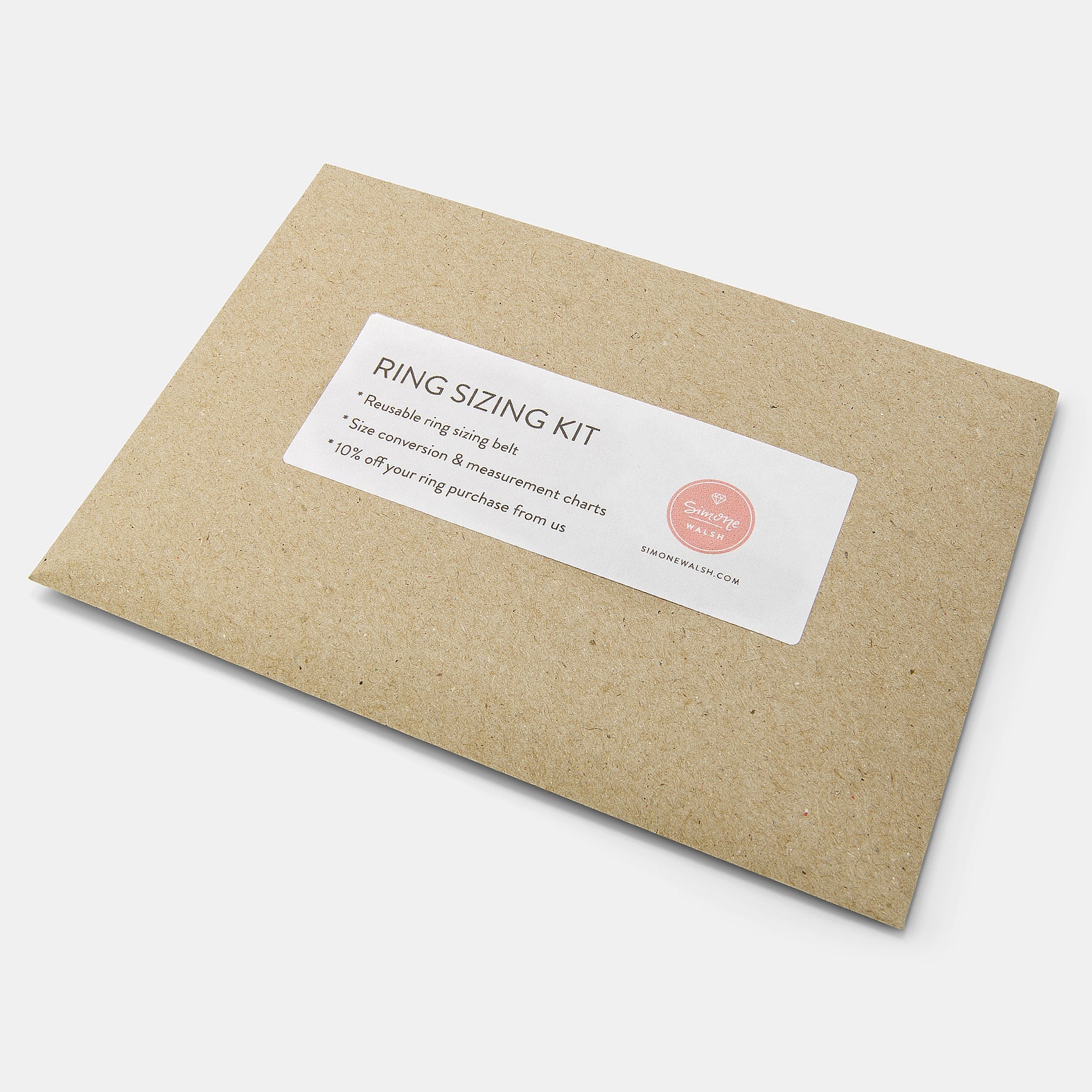Get the perfect fit with our ring sizing kit. It includes a reusable plastic ring sizer, a measuring guide and size conversion chart, plus a 10% discount for your next ring purchase from our Australian online jewellery store.