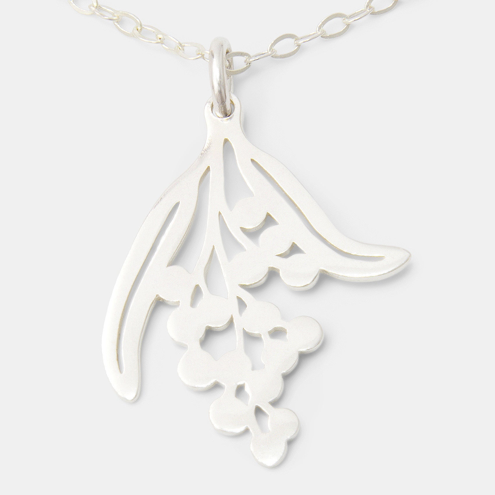 The shimmering silver pendant makes an elegant statement on its own, but it also pairs beautifully with layering necklaces or co-ordinating jewellery, such as the matching Wattle Branch Silver Dangle Earrings.