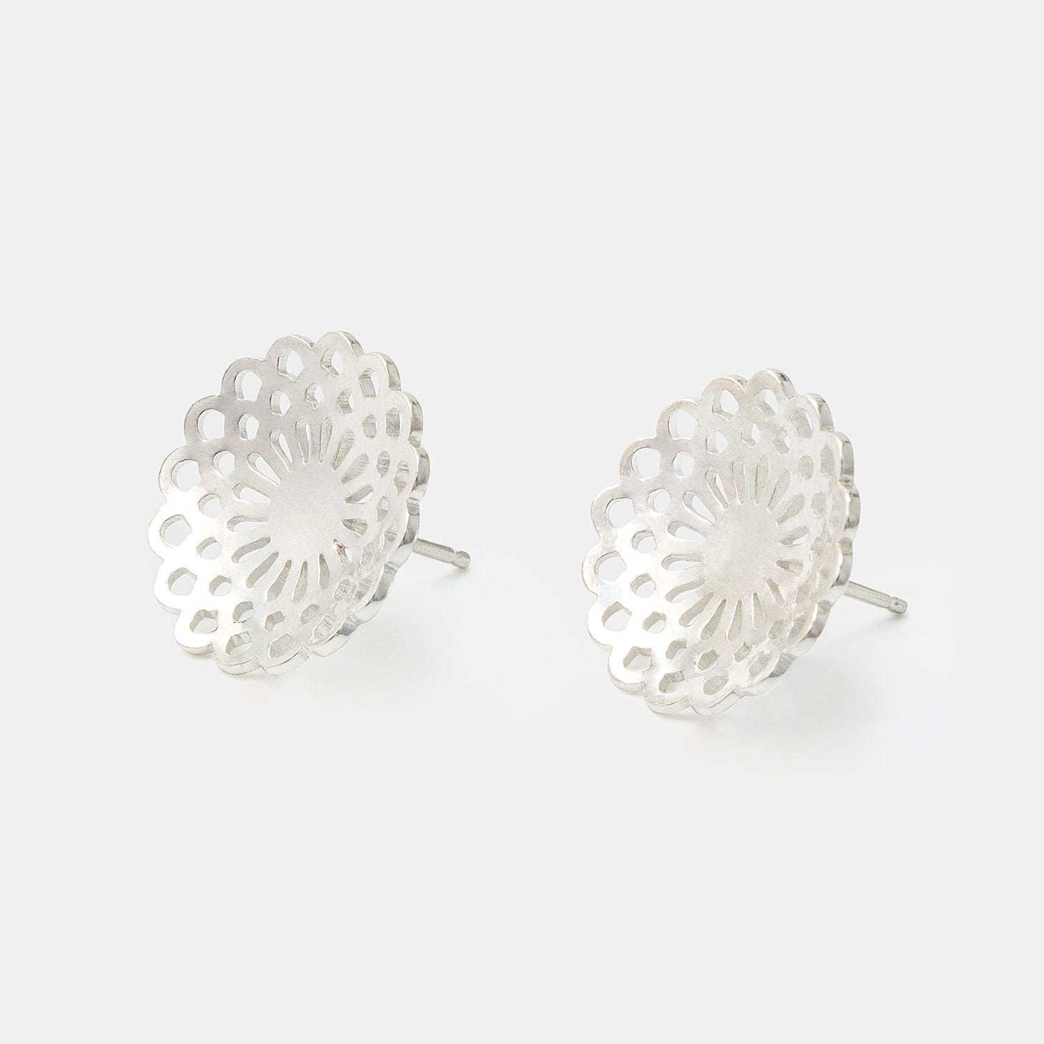These detailed dahlia flower stud earrings in bright sterling silver are elegantly simple, sparkling and versatile. They’re ideal for everyday wear or dressing up.